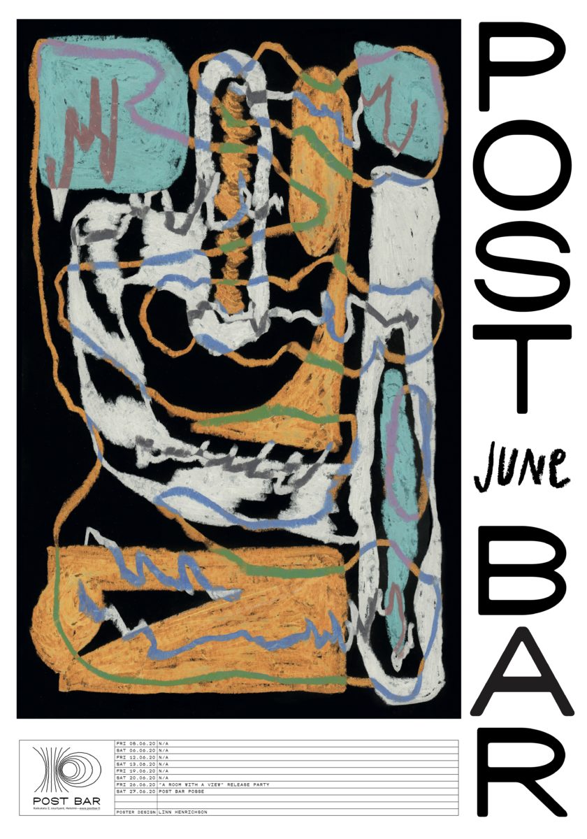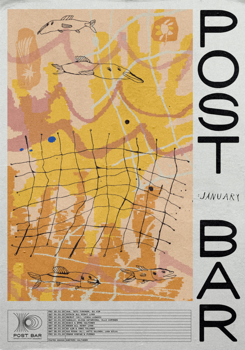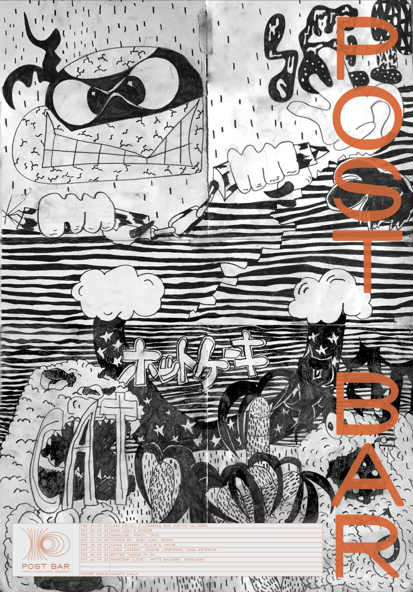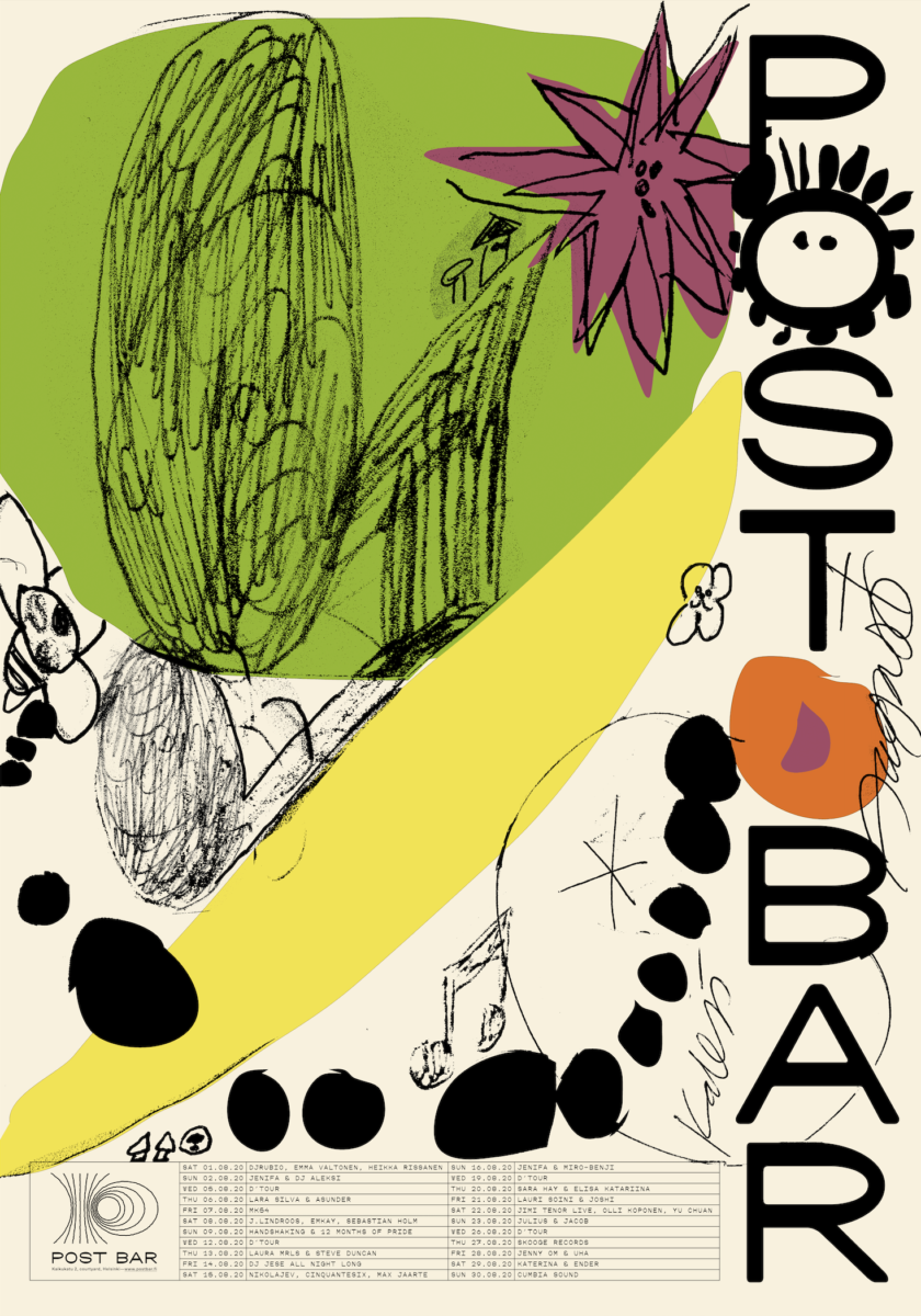 Antti describes the work done for Post Bar: “The august poster was inspired by summer holidays: sleeping late, listening to good music, watching bees and flowers.”