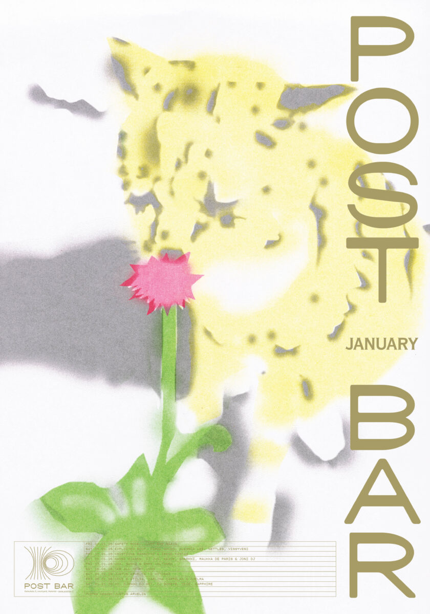The message of the January ‘25 poster is: “Remember to smell flowers.” It is done by graphic designer and disc jockey Justus Arvelin (2000), who recently returned to Helsinki from New York. The piece features Justus’ late cat Paavo, who knew how to dream of every moment. We should all focus on making the present worth dreaming about. The original artwork is a 4-colour risograph print done at School of Visual Arts in New York at the end of Justus’ exchange studies.