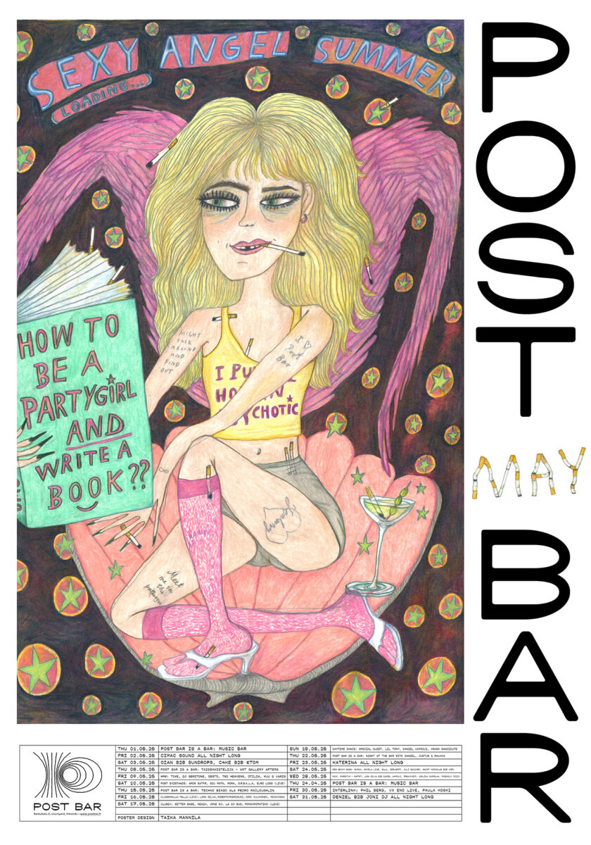 Taika describes the work done for Post Bar: “This is how I imagine the Patron Saint of Hot Girl Reading: flapping her angel wings as she lights yet another cigarette. I also have a strong gut feeling that Sexy Angel Summer is loading around the corner! Plus, I just read in my horoscope that May will be a magical time…”